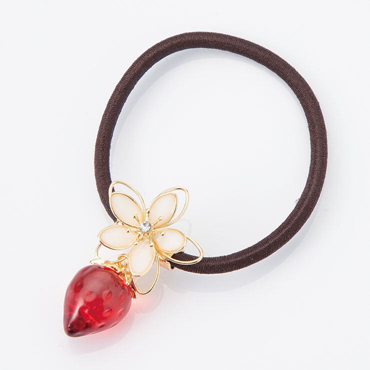 繊細なワイヤー細工のフラワーにステンドグラスの様に透明感のあるホワイトエポを流し入れました!ぷっくりしたクリアレッドの苺との組み合わせが目を引くデザインです!髪をまとめるだけで簡単にヘアスタイルをオシャレに彩ってくれます♪