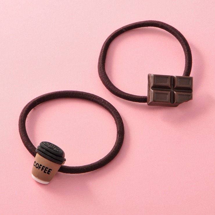 板チョコとコーヒーがヘアスタイルのアクセントになる、遊び心のあるオシャレなヘアゴムです♪