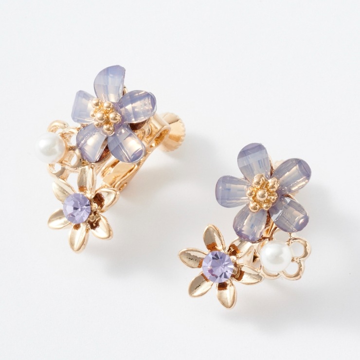 フラワーモチーフが華やかなイヤリングです。コーデのアクセントにも〇。