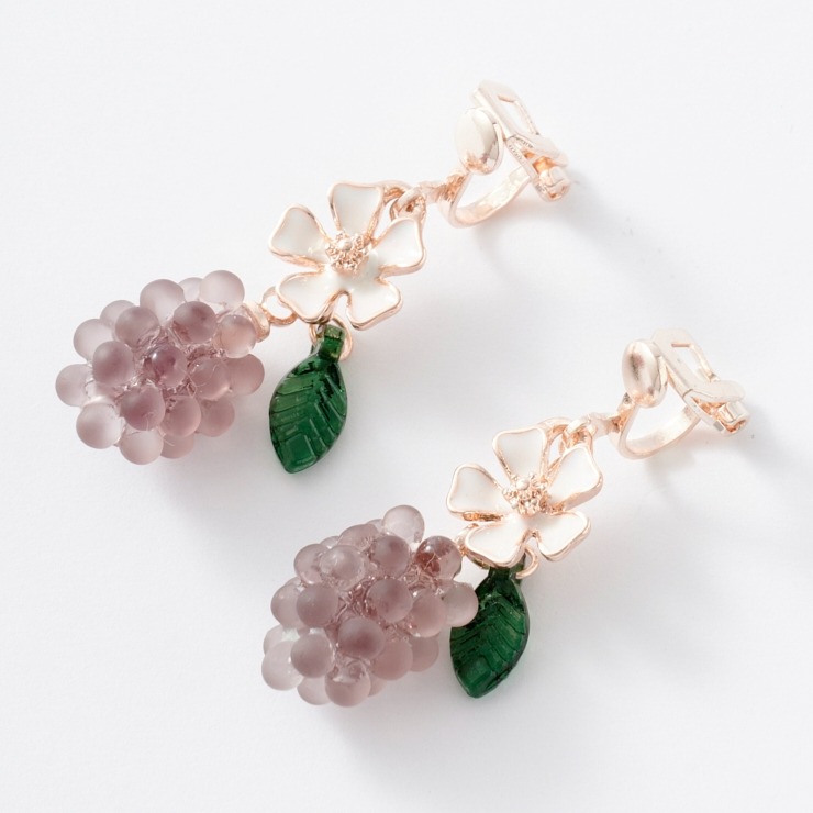 ミニサイズの葡萄とお花がとっても可愛いです!耳元でゆらゆら揺れるデザインでお顔周りを華やかに彩ってくれます♪