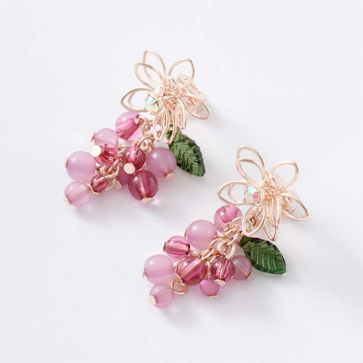 ゆらゆら耳元で揺れる葡萄の実がお顔周りをぱっと華やかにしてくれます!グラデーションカラーの葡萄が動くたびに違う表情を見せてくれます♪