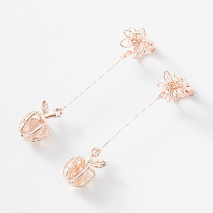 林檎の中のストーンが動いて耳元でキラキラ輝きます!繊細なワイヤーフラワーとメタル林檎がさりげなく、どんなコーディネートにも合わせやすいです♪