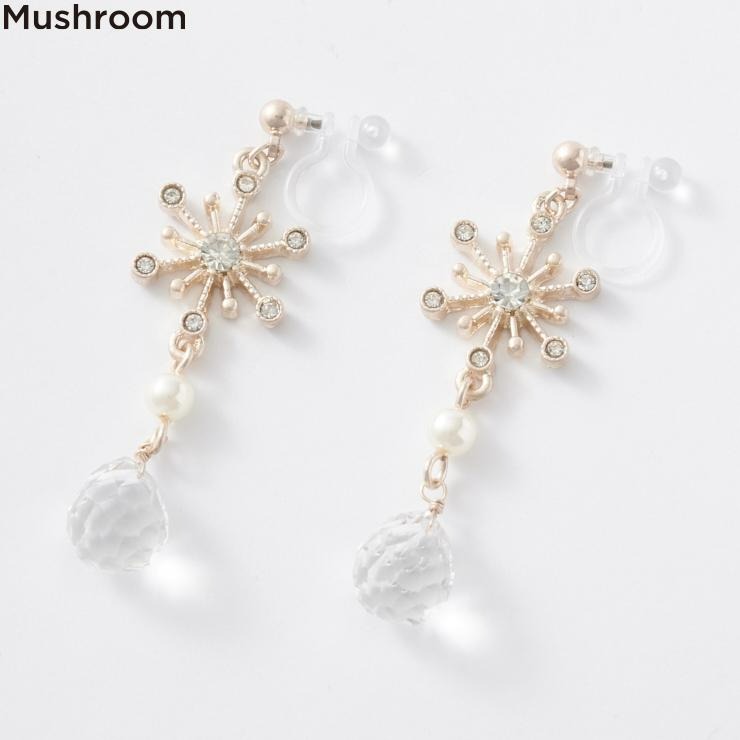 一足早く冬を先取り出来るスノーモチーフとシズクガラスのイヤリング。