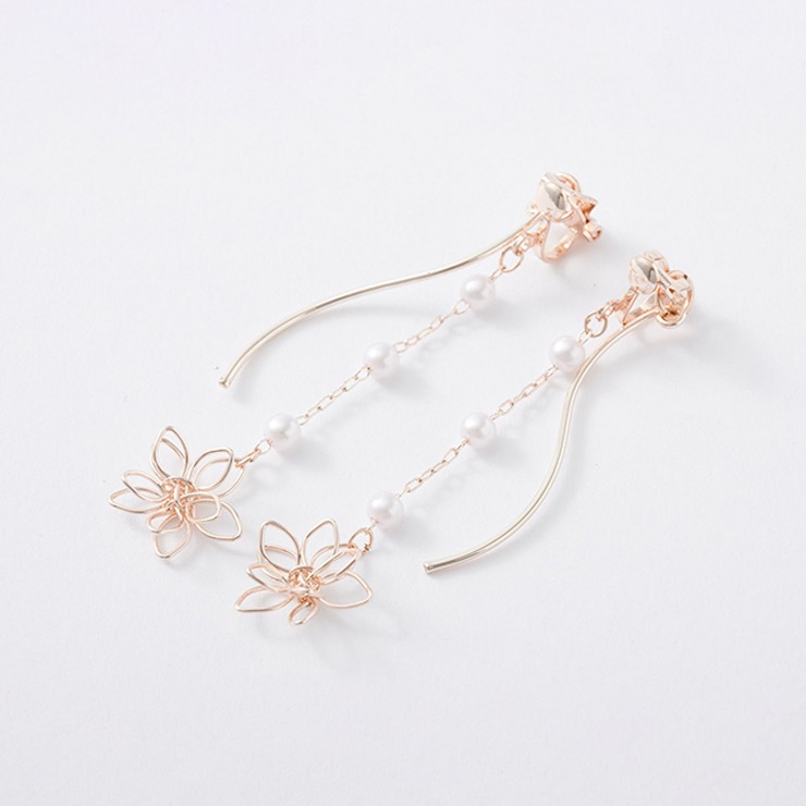 繊細なワイヤー細工の桜とウェーブバーがゆらゆら揺れて、お顔周りをぱっと華やかに彩ってくれます♪耳の後ろからウェーブバーが下がるデザインがとってもオシャレです!