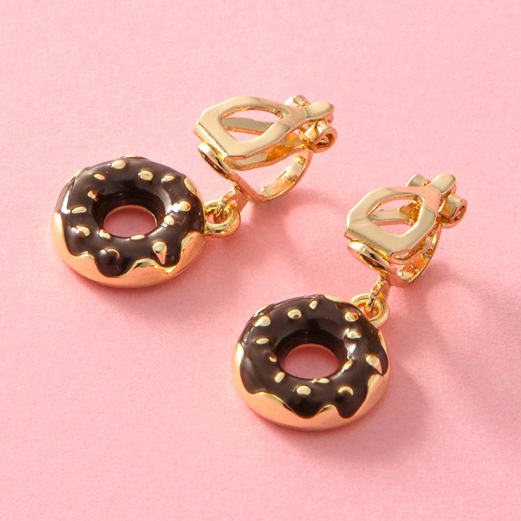 チョコレートドーナツが耳元でゆらゆら揺れてコーディネートのアクセントになる、遊び心のあるオシャレなイヤリングです♪