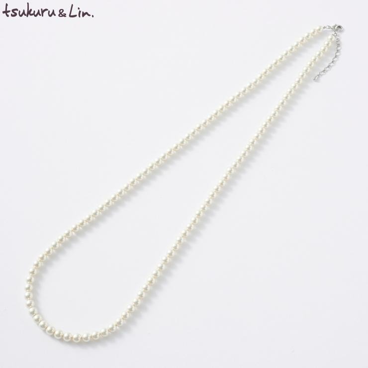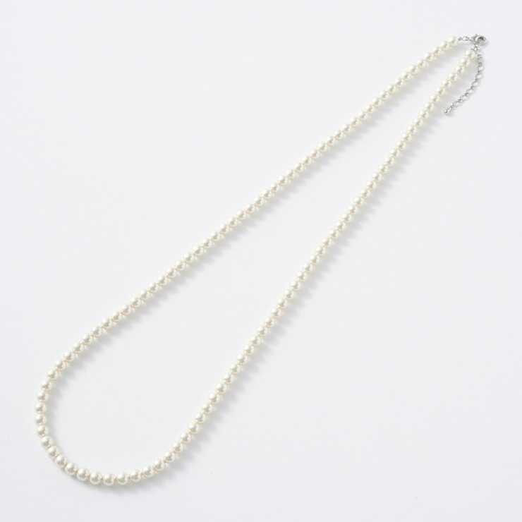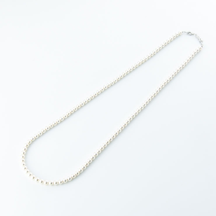 国産の6mmガラスパールを使用した、長め仕様のネックレス。