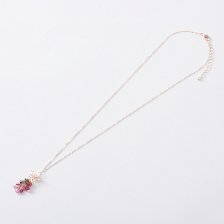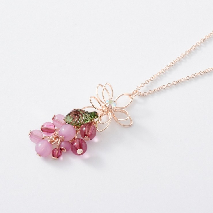 繊細なワイヤーフラワーと葡萄のネックレス。