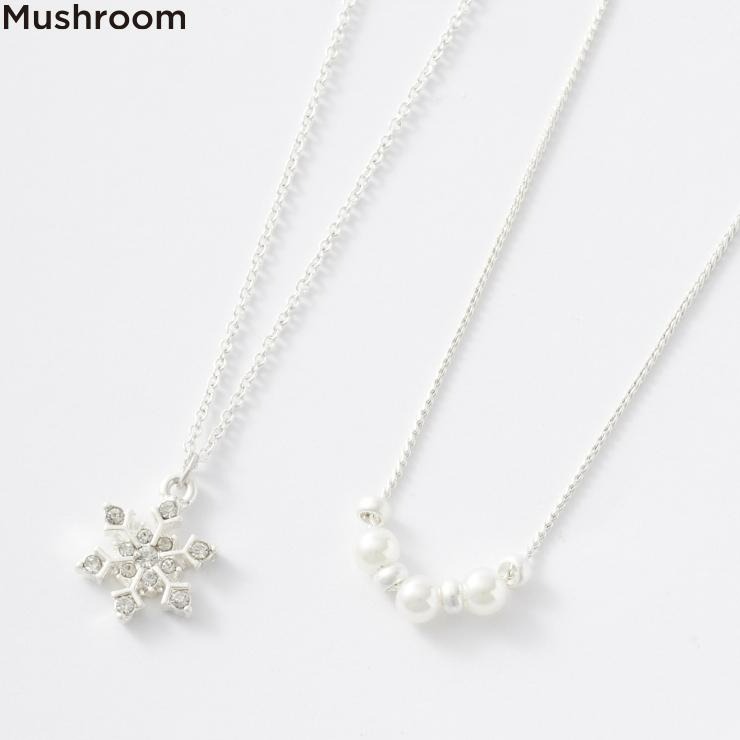キラキラ輝く雪の結晶が胸元を華やかにしてくれます♪小粒のパールネックレスと2本セットなので2連でも1連でも、気分に合わせて3通り楽しめるのが嬉しいです!