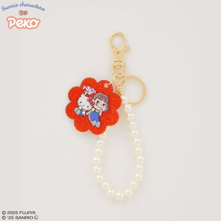 ペコちゃんとハローキティがキュートなバッグチャーム。