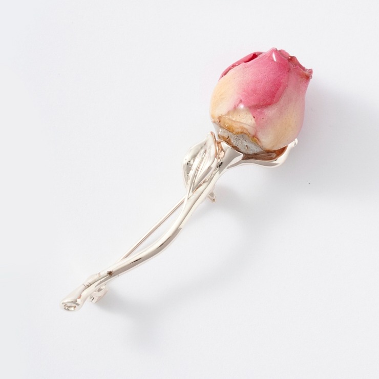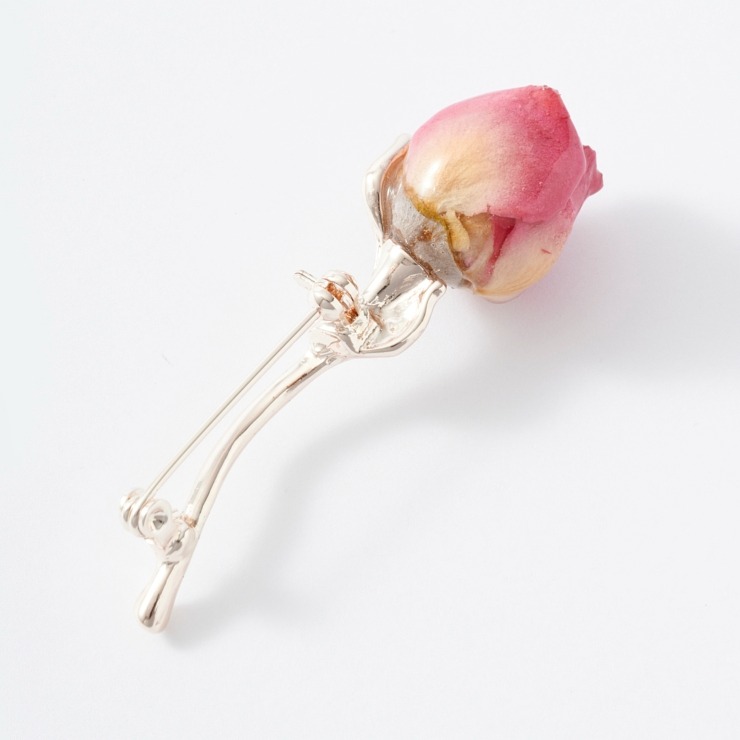 ローズのつぼみのドライフラワーブローチ。