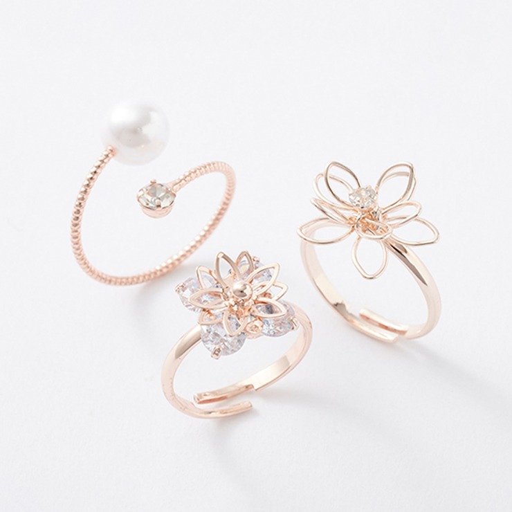 春を一足早く先取り出来る桜モチーフのリング3本セット。