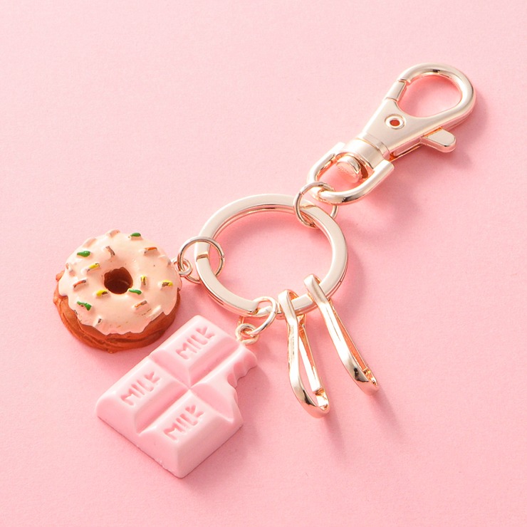 チョコレートとドーナツがアクセントの遊び心のあるオシャレなバッグチャーム&キーリングです♪