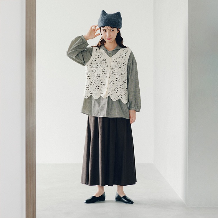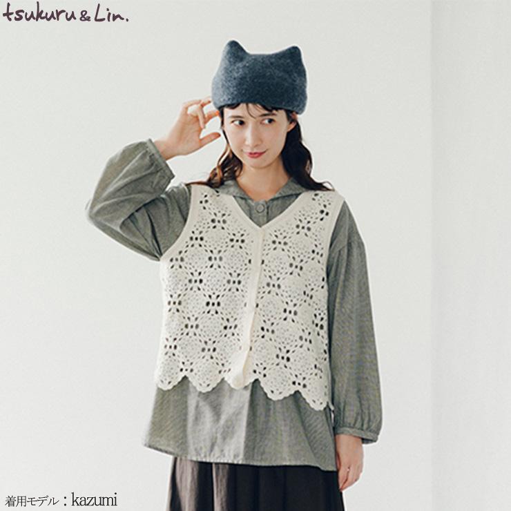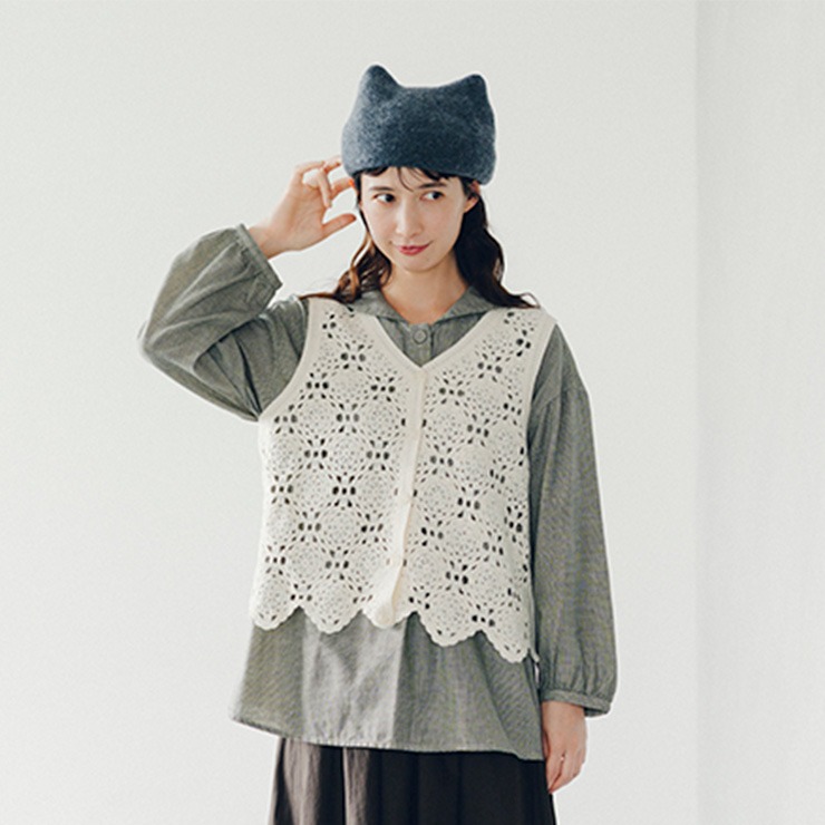 ねこ耳のシルエットになるよう型どりしたベレー帽子。シンプル+カワイイのほっこり感が特徴です。