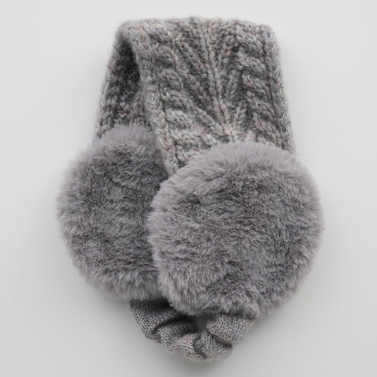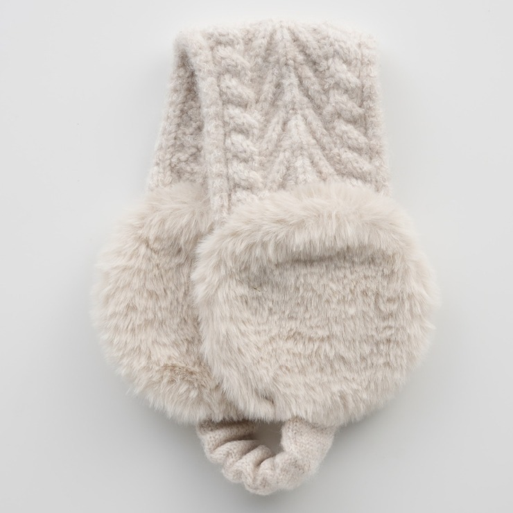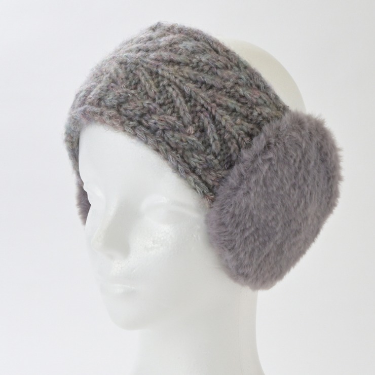 耳あて部分がフェイクファーになったニットとコンビのヘアバンド。エアリーな糸とファー生地のほっこり感がマッチしてます。