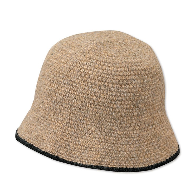 柄編みの配色されたニットハットです。シンプルな編み柄と杢調の色合いに大人っぽさがあります。