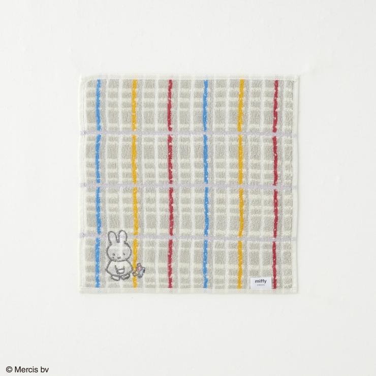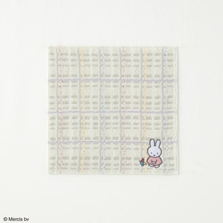 ミッフィーのデザインを施したミニタオルです。右下にワンポイントで入ったミッフィーがかわいい、シンプルで目をひくデザインがポイントです。