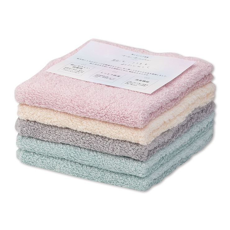 肌を拭く時のダメージを軽減するために、甘く撚ったなめらかな糸を使用。ふんわり柔らかな肌触りが特徴のタオルになります。