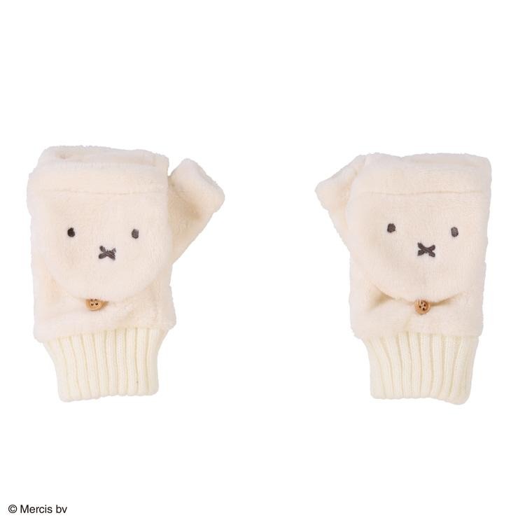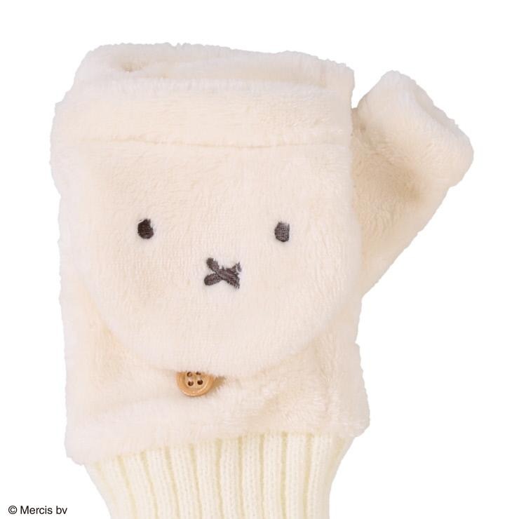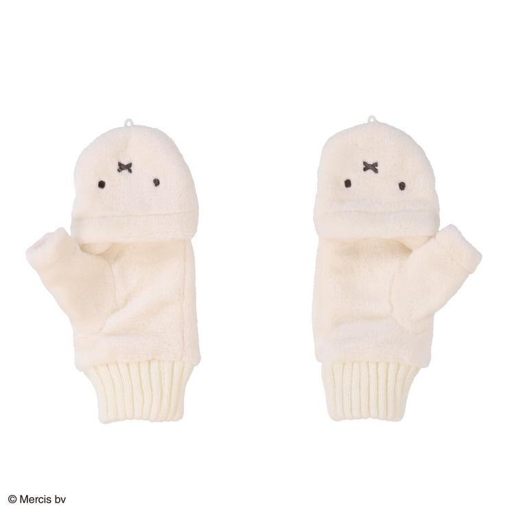 フード付きなので、指先を自由に使いたいときはフードを外し、寒いときはしっかりカバー。機能性とかわいさを兼ね備えた、冬にぴったりのアイテムです。ホワイトはミッフィー、ダークベージュはボリスの刺しゅうが施されています。
