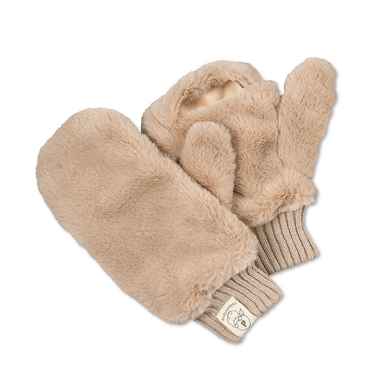 やさしい色合いとボア素材で冬のコーデにぴったり。指が出せる仕様でスマホ操作も快適です。