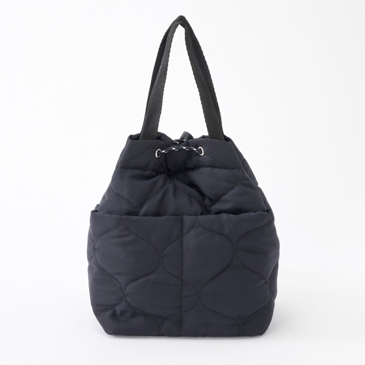 ドロスト紐をキュッと絞ると形が変形し見た目のデザインが変わります♪