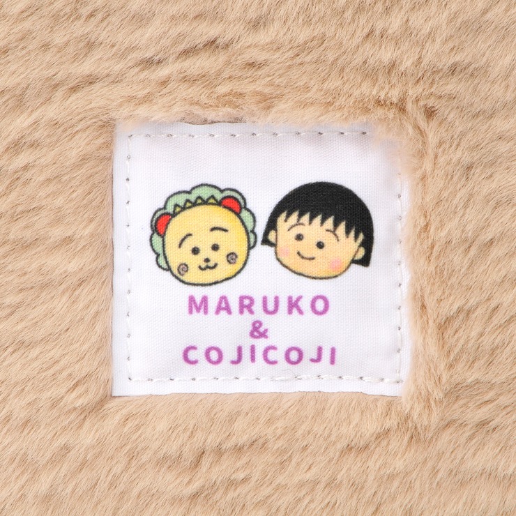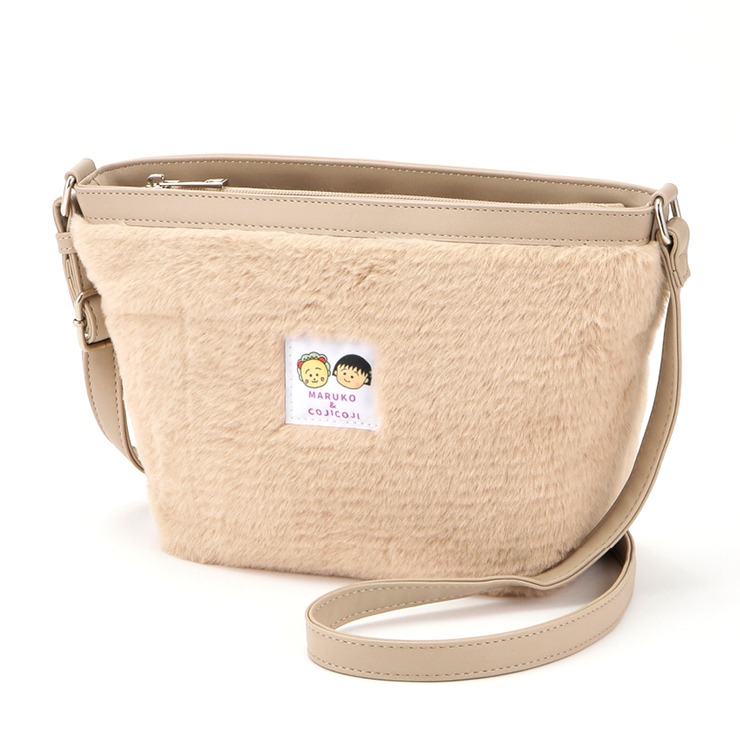 フェイクファーを使用したショルダーバッグにまるコジのプリントネームがポイントです。