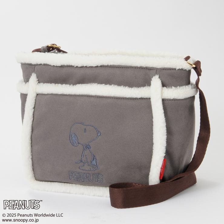 スヌーピーが刺しゅうされたスウェードバッグです!