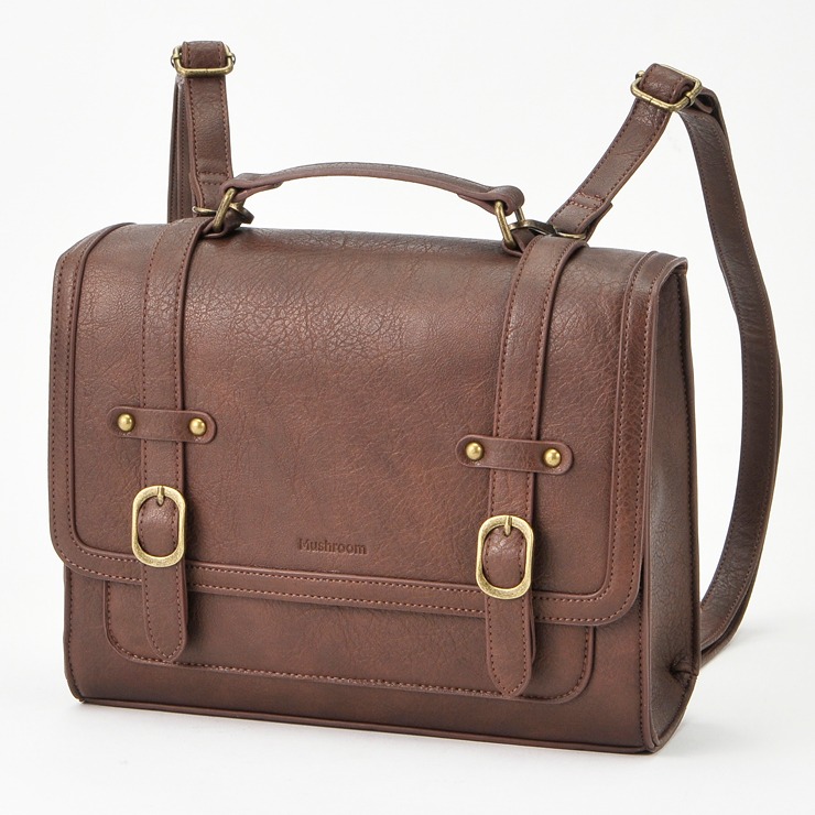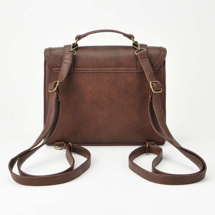 アンティークな雰囲気の合皮素材を使用し、リュック、ショルダーバッグ、ハンドバッグとして使える3Wayバッグです。