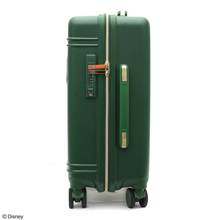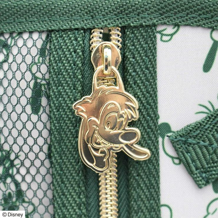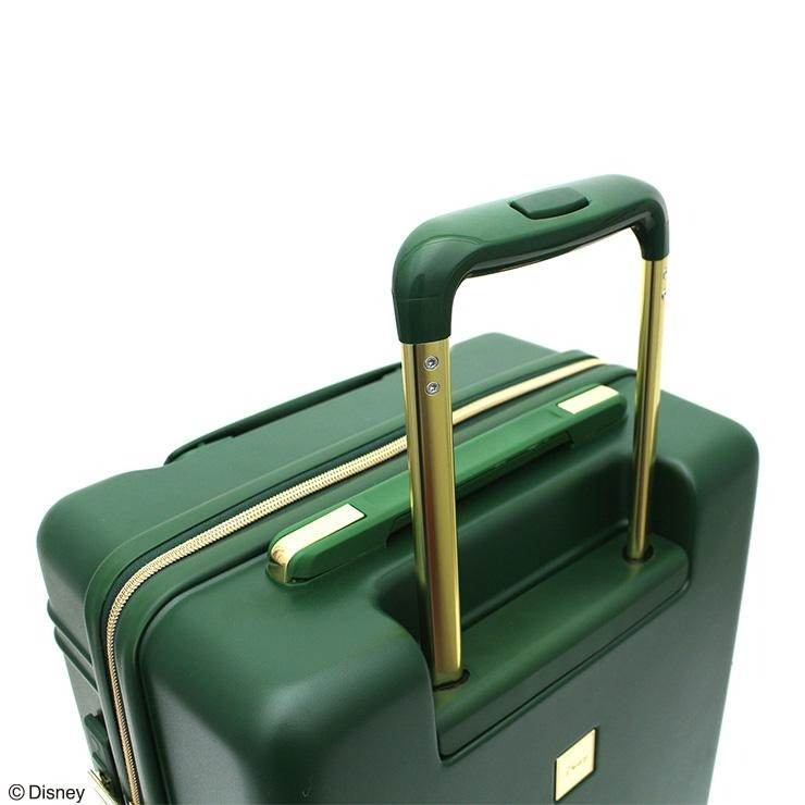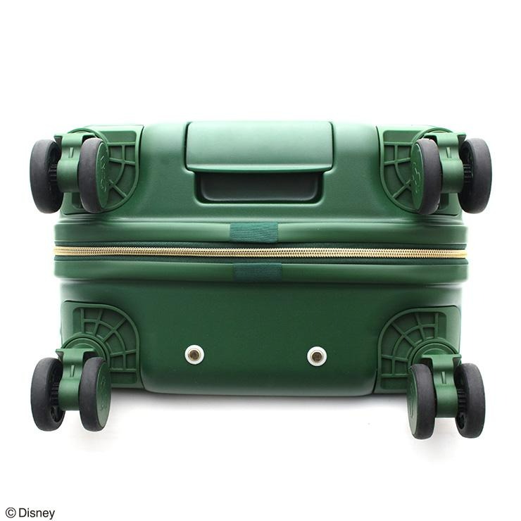 グーフィーが本体正面に大胆に描かれたキャリーケースです。ファスナー持ち手には靴のマークが描かれています。本体正面上部にもう一つハンドルが付いており、荷物を載せたまま持ち上げることができる便利な機能付き。また、正面下部にも持ち手が付いているので車のトランクなどに収納する時に役立ちます。キャスターはダブルキャスターで走行性抜群。またホイルキャップは帽子のデザインになっています。内装はグーフィーの様々な表情が楽しい総柄デザインで、ファスナー持ち手はマックスになっているのもこだわりの一つです。