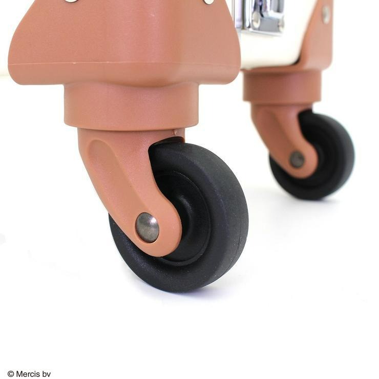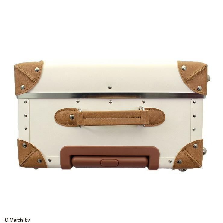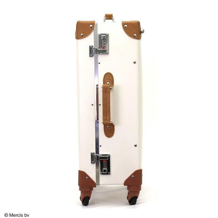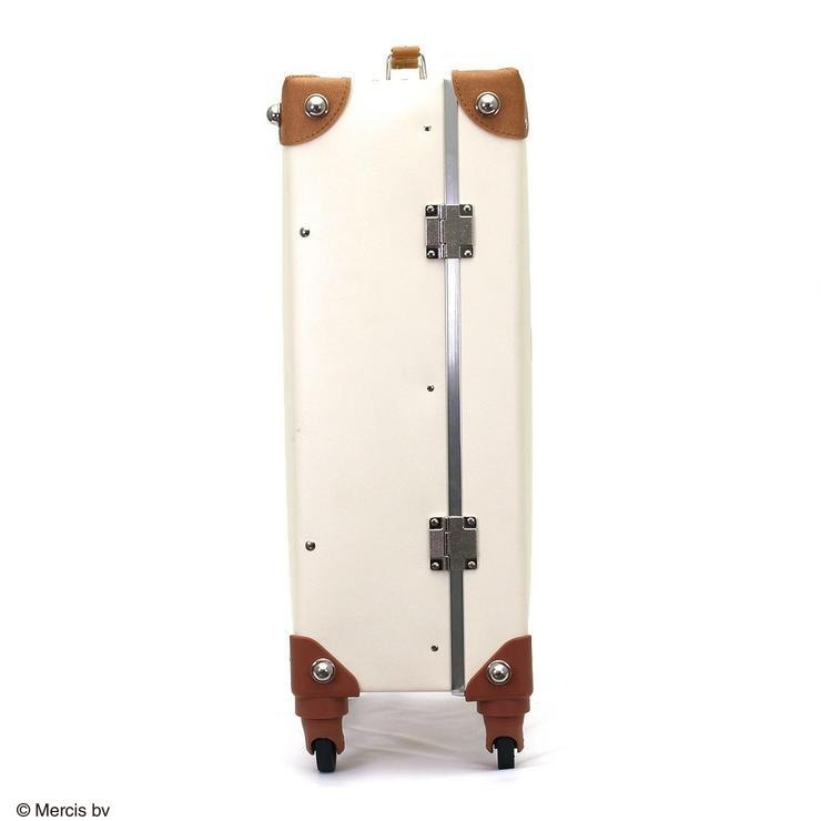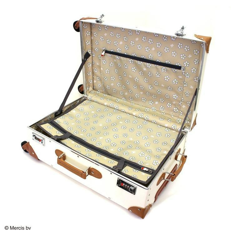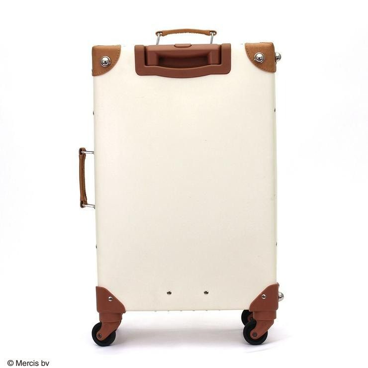 ミッフィーのかわいいフェイスのトランクキャリー。合成皮革で作られておりクラシカルでおしゃれな雰囲気。鍵は1000通りのダイヤルロックを採用。内装のメインルームに荷崩れを抑える仕切りが付いており、メッシュポケットもとっても便利です。内装生地にはかわいいミッフィーの花柄をプリント。内装のファスナートップもミッフィーの形で、細部までこだわった作りです。