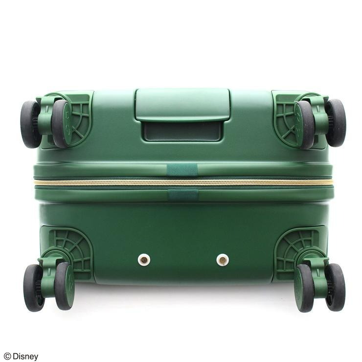 グーフィーが本体正面に大胆に描かれたキャリーケースです。ファスナー持ち手には靴のマークが描かれています。本体正面上部にもう一つハンドルが付いており、荷物を載せたまま持ち上げることができる便利な機能付き。また、正面下部にも持ち手が付いているので車のトランクなどに収納する時に役立ちます。キャスターはダブルキャスターで走行性抜群。またホイルキャップは帽子のデザインになっています。内装はグーフィーの様々な表情が楽しい総柄デザインで、ファスナー持ち手はマックスになっているのもこだわりの一つです。