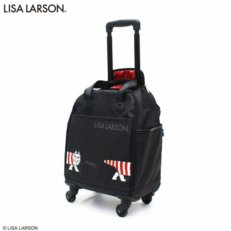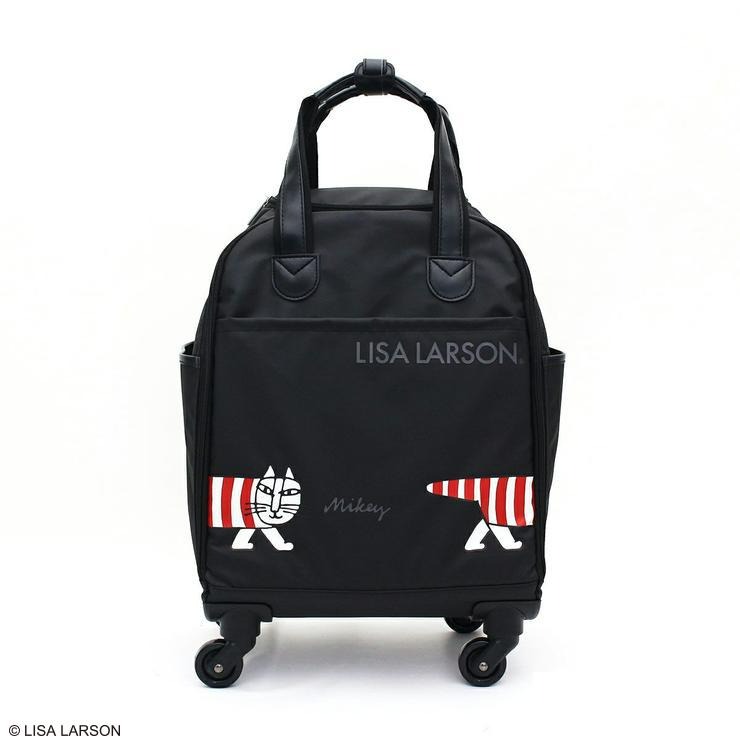 国内線、国際線100席以上の航空機の機内に持ち込み可能サイズ。旅行から普段使いまで幅広くお使いいただけるリサラーソンのソフトキャリーケース。本体重量が2.0㎏と軽量で走行性もバツグン。開口部が縦開きなので、本体を立てた状態で荷物の出し入れが可能。また本体正面のファスナーポケットもとっても便利。側面にもポケットが付いており、水筒や折りたたみ傘、小物などを収納できます。内装はマイキーの赤い総柄で開けた時も可愛いデザインが楽しめます。