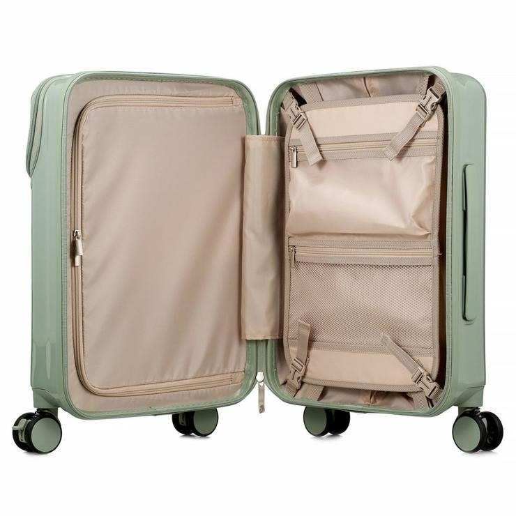最新機能ドリンクホルダー付きでとっても便利なキャリーケースです。本体背面にドリンクホルダーが埋め込まれているので、ペットボトル等を簡単に収納してスーツケースを持ち歩く事ができます。荷物の出し入れは、本体を立てた状態で可能な上パカ仕様。上パカ部分の内側にはメッシュポケットがあり、モバイルバッテリーやスマホ、すぐに取り出したいアイテムの収納に便利です。キャスターはダブルキャスターなので凹凸の多い路面でも安定した走行が可能。更に衝撃吸収サスペンションキャスターで振動が手に伝わりにくく疲れにくい仕様です。錠前はキーでもダイヤルでも施錠可能なシフレロックを採用。TSAロック付きでアメリカ方面への移動も安心です。