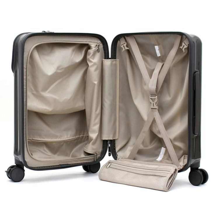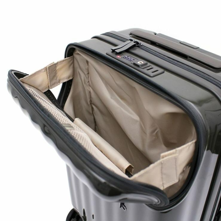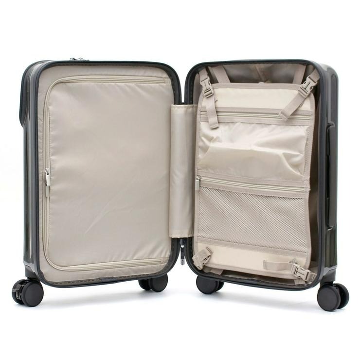 最新機能ドリンクホルダー付きでとっても便利なキャリーケースです。本体背面にドリンクホルダーが埋め込まれているので、ペットボトル等を簡単に収納してスーツケースを持ち歩く事ができます。荷物の出し入れは、本体を立てた状態で可能な上パカ仕様。上パカ部分の内側にはメッシュポケットがあり、モバイルバッテリーやスマホ、すぐに取り出したいアイテムの収納に便利です。キャスターはダブルキャスターなので凹凸の多い路面でも安定した走行が可能。更に衝撃吸収サスペンションキャスターで振動が手に伝わりにくく疲れにくい仕様です。錠前はキーでもダイヤルでも施錠可能なシフレロックを採用。TSAロック付きでアメリカ方面への移動も安心です。