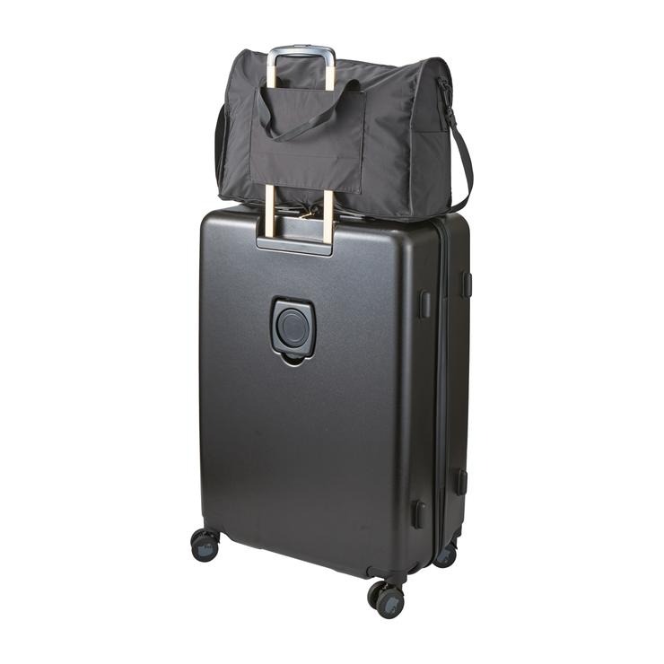 普段使いから旅行用まで、幅広く使える軽いボストンバッグ。使わないときはコンパクトに折りたたんでスーツケースやカバンの中に。使いたいときにぱっと広げて使えます。バッグ背面にはスーツケースのキャリーバーに通せるようにキャリーバー通しが付いているので、旅行の際はとっても便利。
