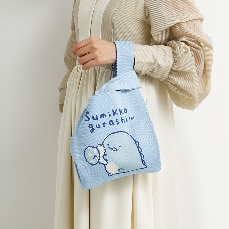 ちょっとしたお出かけに便利なサイズ♪すみっコぐらし(とかげ)のニットバッグです