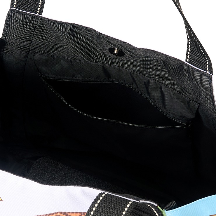 内側には仕分け可能なオープンポケット、ファスナー付きポケット、