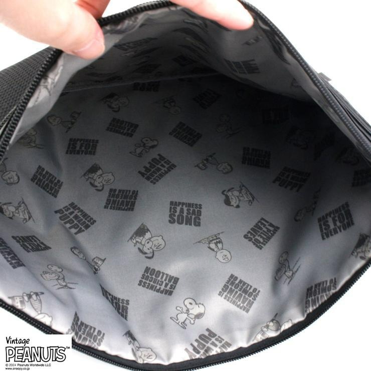 ファスナー持ち手はスヌーピーの形をしており、内装の柄はスヌーピーの総柄になっています。