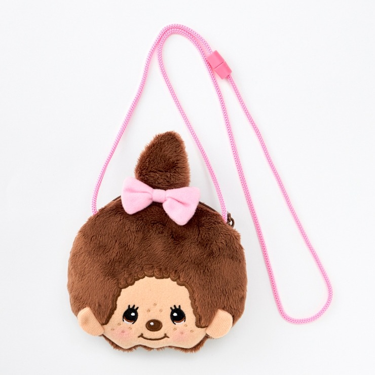 ピンク色のリボンをつけた『もんちっち』が可愛いポーチです。