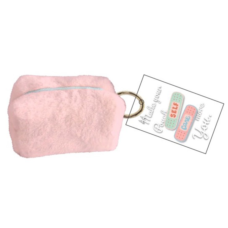 ふわふわのファー素材に、自由に貼れる刺繍ワッペン付き。かわいさとカスタマイズの楽しさを詰め込んだミニポーチです。
