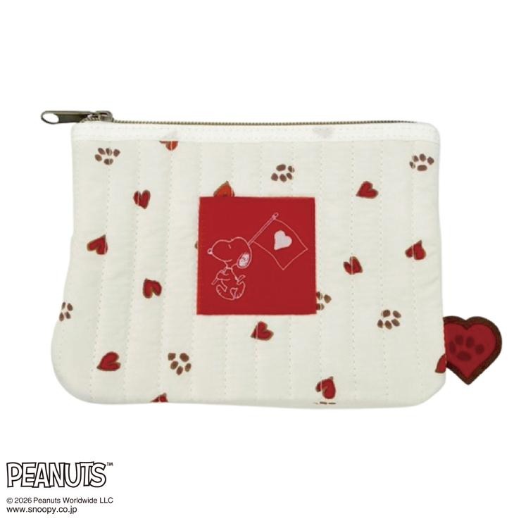 スヌーピーの足跡×ハートの総柄をあしらった、トレンドのキルティングポーチが登場!