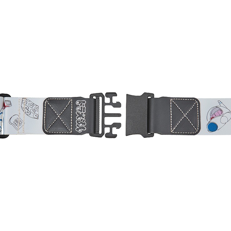 スーツケースの目印として、大切な荷物を守る防犯用として、スーツケースが衝撃で不用意に開かないために、万が一旅行中にスーツケースの鍵やファスナーが壊れ、スーツケースを締められない時の応急処置として便利。日本メーカー「ニフコ」の超薄型ワンタッチバックルを使用しているので、カチっと着脱簡単!スーツケースに合わせて長さ調節も可能です。