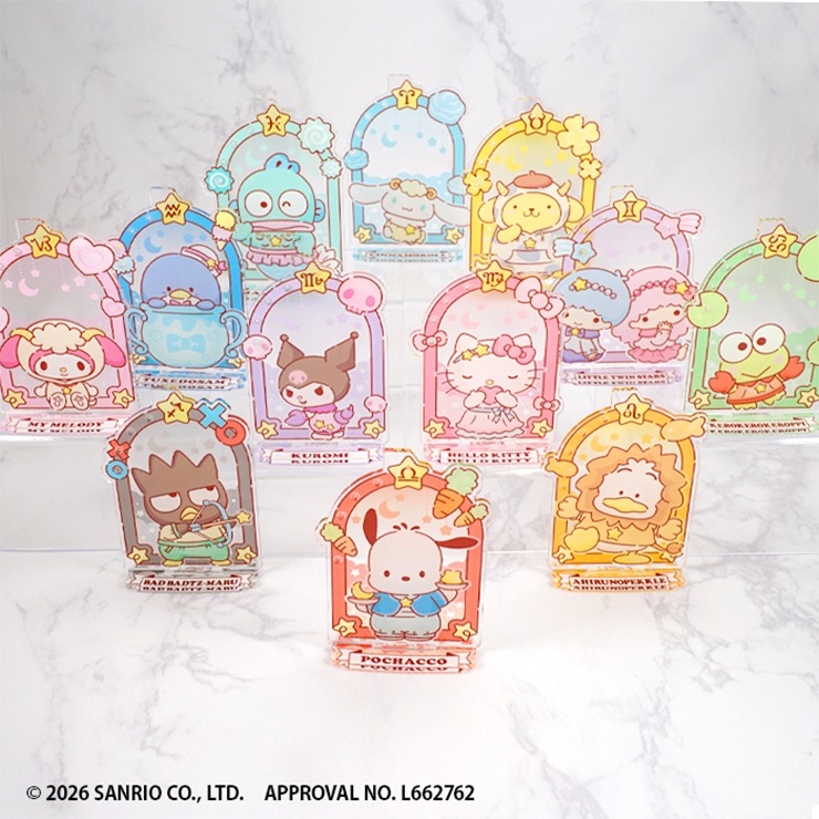 「サンリオキャラクターズ」が12星座に扮しアクリル製アクセサリースタンドです。