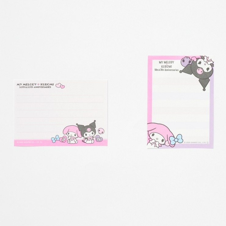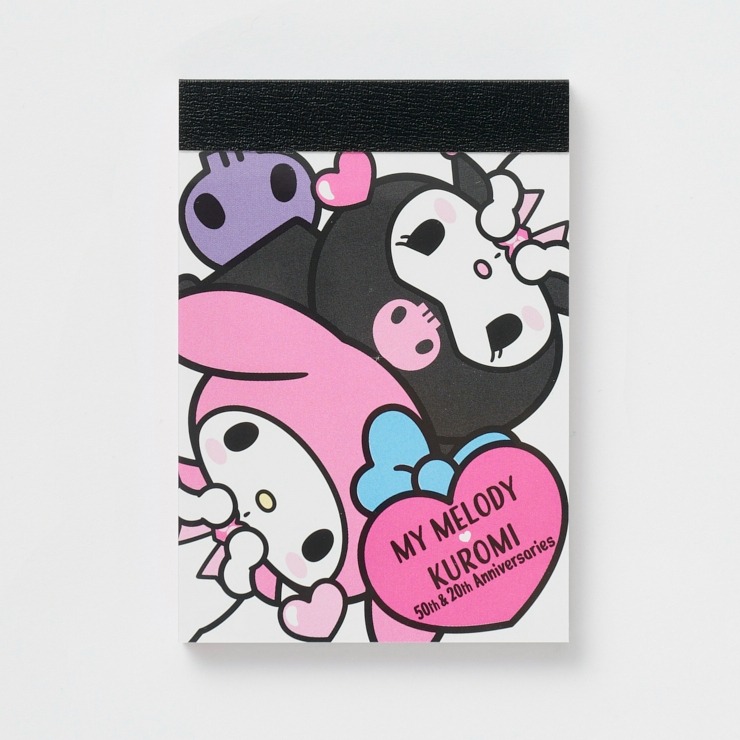 マイメロディ50周年、クロミ20周年、特別デザインのミニメモです。