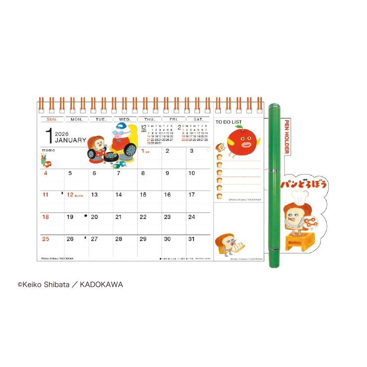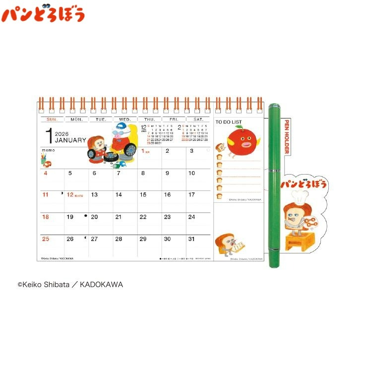 パンどろぼうのペンホルダーとふせんが付いた楽しく使いやすい卓上カレンダーです!