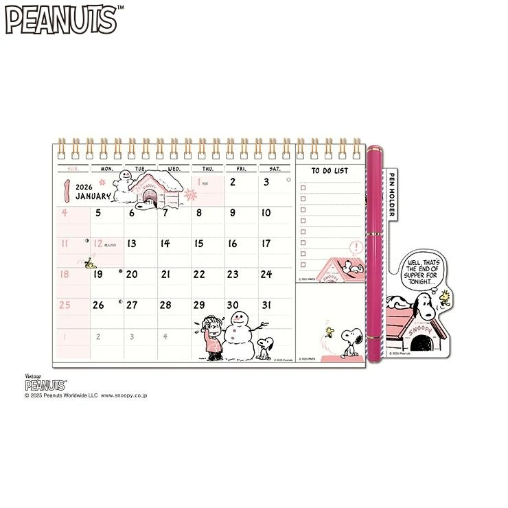ペンホルダー&ふせん付の使いやすい卓上カレンダーです。ふせんは各30枚積層。便利なTO DO LISTふせんとちょっとしたメモや伝言に便利なミニふせんです。
