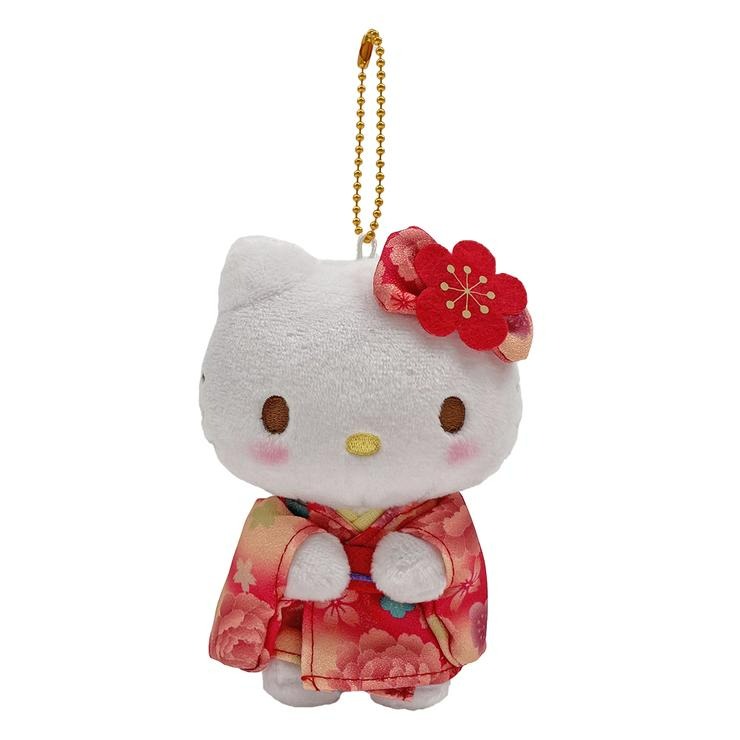 グラデーションの着物が鮮やかなキティのぬいぐるみキーホルダーです!