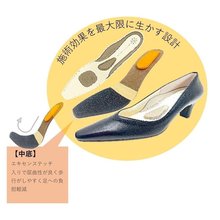 ツボ押しインソールを使用したパンプスで悩み改善をサポートします。
