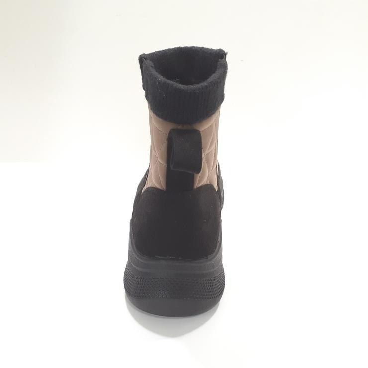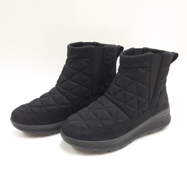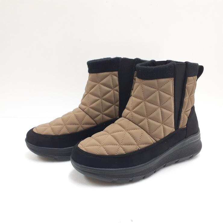 キルティングデザインに細めのサイドゴアを配置し、