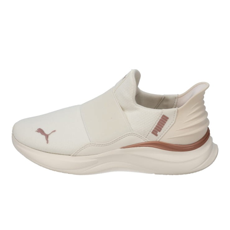 立ったままラクにスッと履けるハンズフリーがポイント。独自で開発したハンズフリー機能をサポートするヒールカウンターが特徴的なデザインのニューモデル。様々なシーンや用途でタウンで活躍する女性用デイリースニーカー。PUMAのアイコニックなデザインであるストラップをアッパーに採用。PUMAのSOFTRIDEミッドソールを搭載し、どんなアクティビティにも対応する十分なクッショニングを提供。大胆なデザインに加え、SOFTFOAM+ソックライナーを搭載し、ヒールにクッション性を加えてフィット感を高めています。